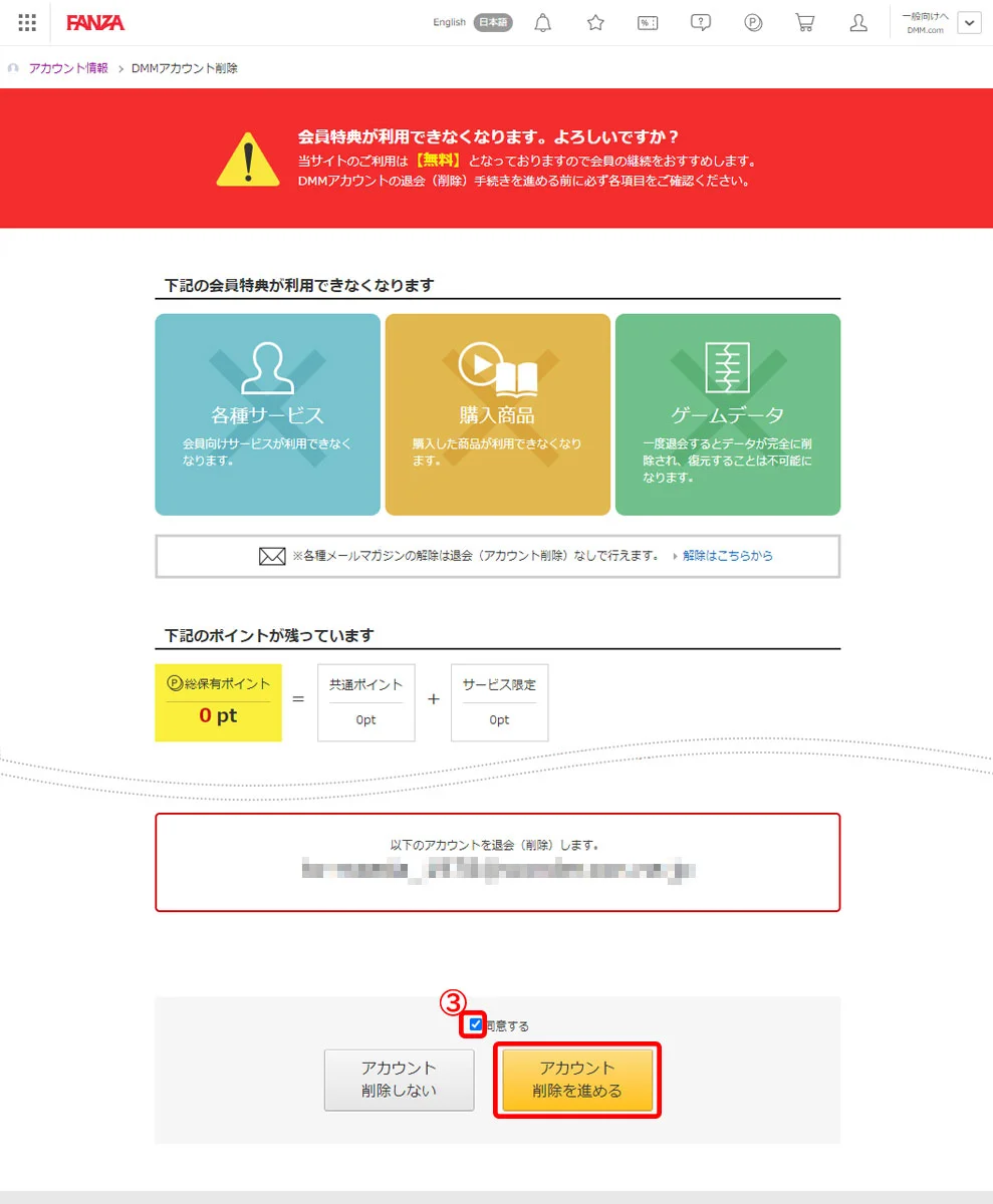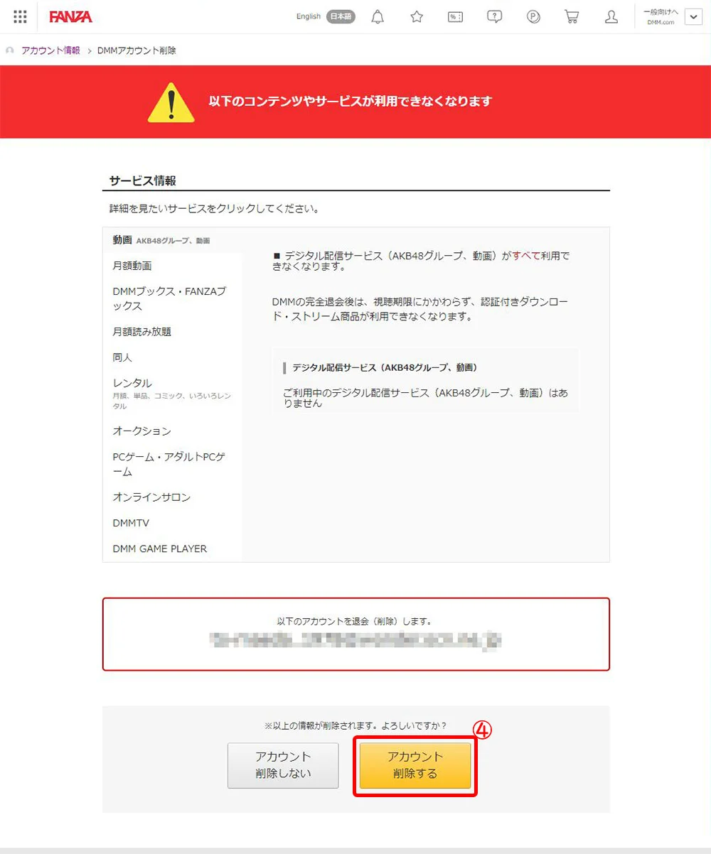 FANZAは、解約・退会も簡単にできます。解約すると下記のことができなくなります。